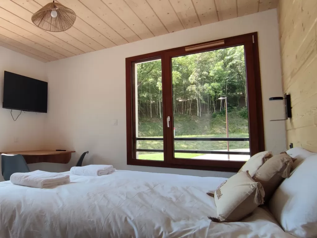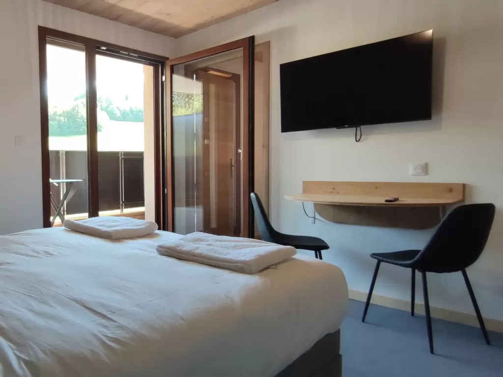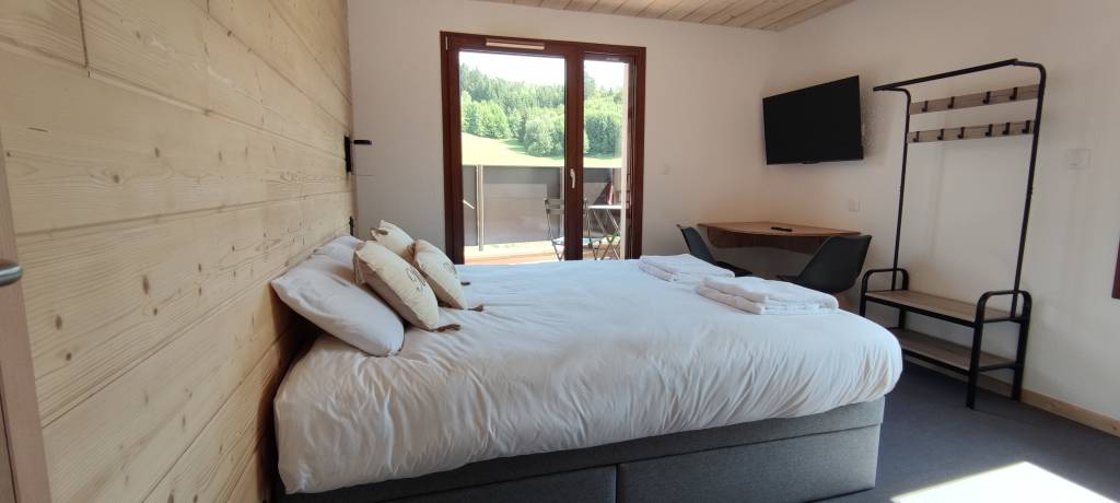Chacune disposant de sa propre entrée, salle de bain privée, télévision et d'un balcon avec vue sur les montagnes du Jura.