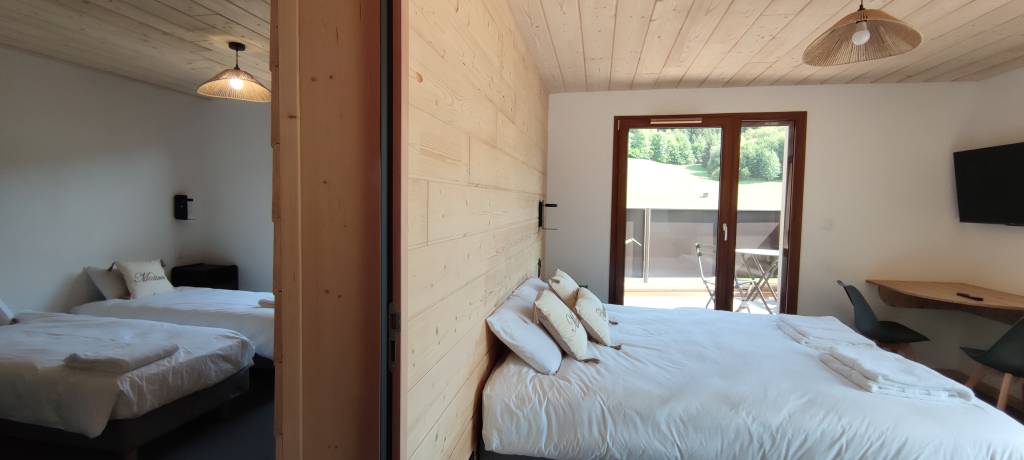 Découvrez notre confortable APPART QUATTRO CONFORT, offrant deux chambres séparées communicantes.